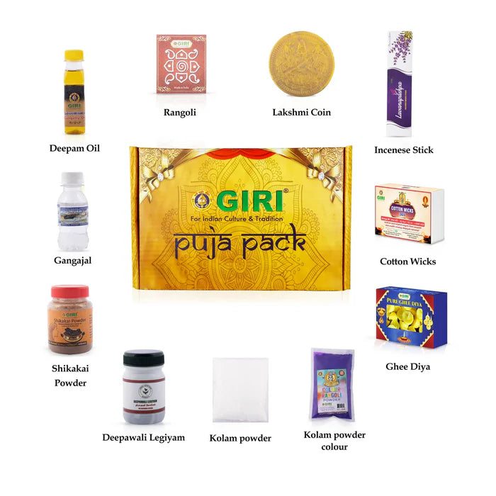 El Diwali Puja Pack de YamaNeeYama reúne los elementos tradicionales necesarios para realizar una puja completa durante el festival de las luces. Cada componente ha sido cuidadosamente elegido para honrar la prosperidad, la pureza y la alegría espiritual que caracterizan esta festividad.
